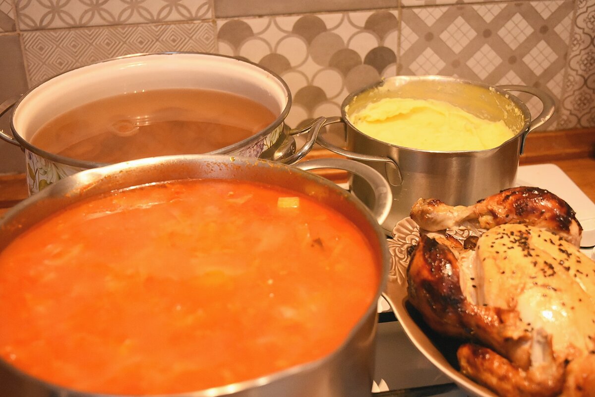 Всем привет! Всегда готовлю простые блюда из доступных продуктов. За 1 -1,5 часа на пару дней. И мой муж нормальный! Он понимает и жалеет меня, чтобы я не стояла каждый день у плиты. Он будет есть разогретую еду на второй день)). А эгоистам пусть готовят хоть каждый день. Это я к чему? А к тому, что меня упрекали, осуждали в прошлых подборках "готовки за час на пару дней". Если у вас есть время, вы не любите не свежеприготовленною еду-готовьте с превеликим удовольствием, но зачем осуждать иных? Мне так удобно, значит и хорошо. Главное, что всех членов моей семьи всё устраивает. В комментариях под прошлыми статьями столько хвастушек, таких хозяек-героев прям. К чему это? Я искренне не понимаю, ведь каждый живет как хочет и это явно не то, чем нужно гордиться...Гордиться можно крепкой семьей, хорошим воспитанием, но уж точно не готовкой и уборкой. Вчера я наварила огромную кастрюлю борща на курице с домашним томатом и перцами, запекла курицу, на гарнир пюреху, и компот из сушки. Ну с