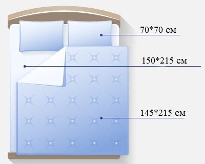 Обращаем ваше внимание, что допускается отклонение от этих размеров на несколько сантиметров при пошиве постельного белья. Для натуральных тканей следует обязательно учитывать возможность усадки постельных принадлежностей после стирки.