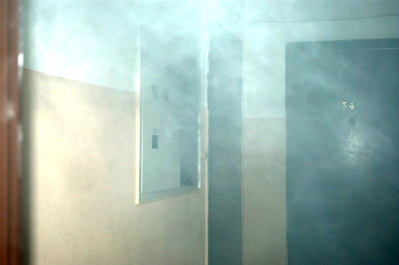 Через какое-то время вы замечаете, что на самом деле пахнет гарью. Внимательно осмотрев квартиру и не найдя в ней причины возгорания, вы догадываетесь подойти к окну и выглянуть вниз – и видите, что этажом ниже из окна идет белый (пока еще белый!) дым. Вы профессионально определяете стадию пожара, понимаете, что его еще можно локализовать самостоятельно, и спешите в квартиру – возможный источник пожара.