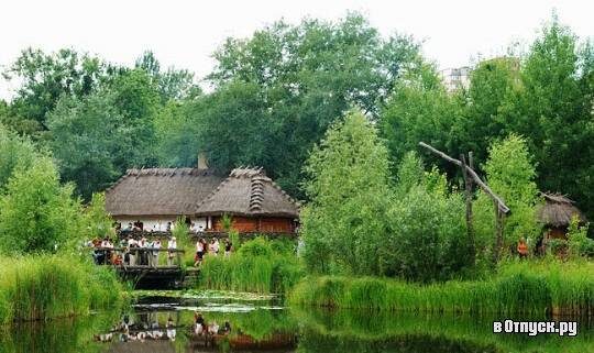 Архитектурный ансамбль насчитывает около сотни объектов, с деревянной казацкой церковью Покровы Пресвятой Богородицы - в центре, производит неизгладимое впечатление. Три купола и колокольня церкви, схожей с той, что в эпоху Богдана-Зиновия Хмельницкого украшала Запорожскую Сечь, привлекает огромное внимание.