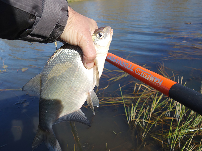 Для ловли осенней плотвы вполне достаточно обзавестись 5 — 7 метровым удилищем. Чаще всего я пользуюсь 7-и метровым Team Salmo TOURNAMENT POLE, и 6-и метровым Team Salmo POLE.