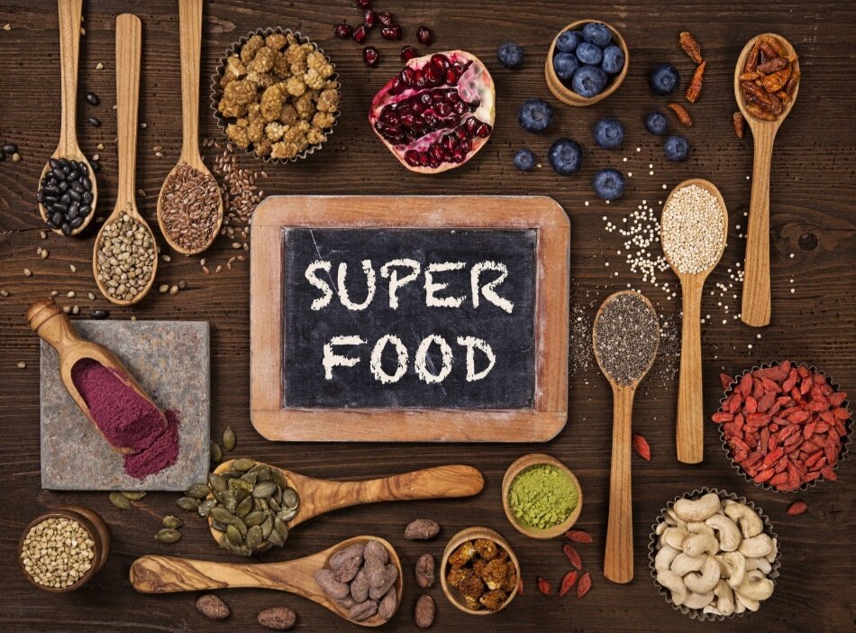 Супер Включите в рацион питания суперпродукты В пищевой индустрии их называют «функциональными продуктами». Речь идёт о продуктах, которые не только содержат важные питательные вещества, но и наделены дополнительными функциями (вроде укрепления здоровья или профилактики заболеваний). Они часто упоминаются в СМИ как продукты, способные бороться с различными болезнями. Примеры таких суперпродуктов: Все они по праву заслуживают называться суперпродуктами, каждый из них оказывает благотворное влияние на организм: В США, запрещено, наделять этикетку продуктовую суперпродуктом, если он не прошел соответствующие исследования, и не доказал свою полезность. Поспешим вас предупредить, что многие компании, в погоне за прибылью, заведомо завышают цену, выдавая, например, высушенный банан в условиях чистого воздуха и полезными лучами солнца за 500-600 рублей, биркой суперпродукт. Не видитесь! Суперпродукты, это не только продукты, произведенные в условиях идеальной экологии, в дали от автомобильны