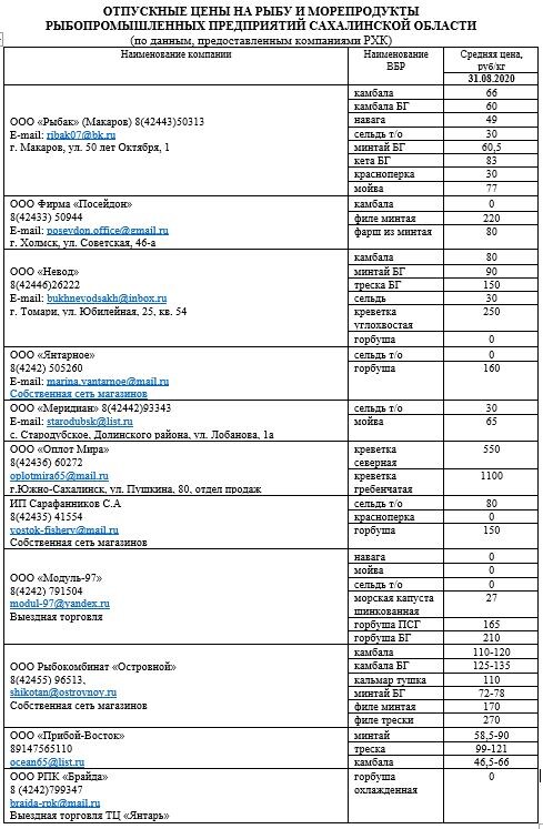 Рыбопромышленным предприятиям, желающим разместить данные о своих ценах на продукцию на сайте агентства по рыболовству Сахалинской области, предлагаем направлять информацию