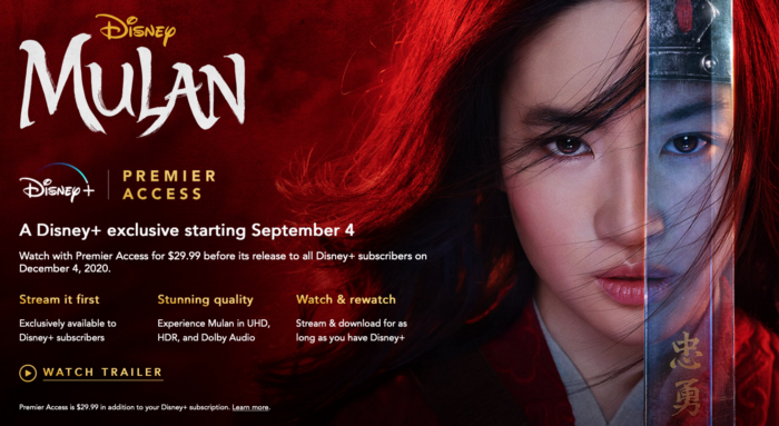 В новом описании на странице Disney Plus Мулан отмечается, что она будет доступна всем подписчикам 4 декабря 2020 года. На странице часто задаваемых вопросов о Мулан на Disney Plus также указано, что «Предложение Premier Access будет доступно до 2 ноября 2020 года», но это неясно, что именно это означа