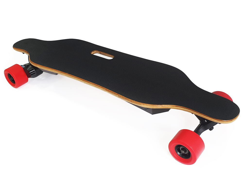 Важная особенность: аккумулятор и контроллер в индивидуальных корпусах установлены отдельно друг от друга. Это сделано для того, чтобы скейт был более гибким. Существуют модели, где батарея и котроллер находятся в цельном корпусе. В этом случае существует риск повреждения электрических компонентов при сильном прогибе. Здесь же этот риск сведен к минимуму.