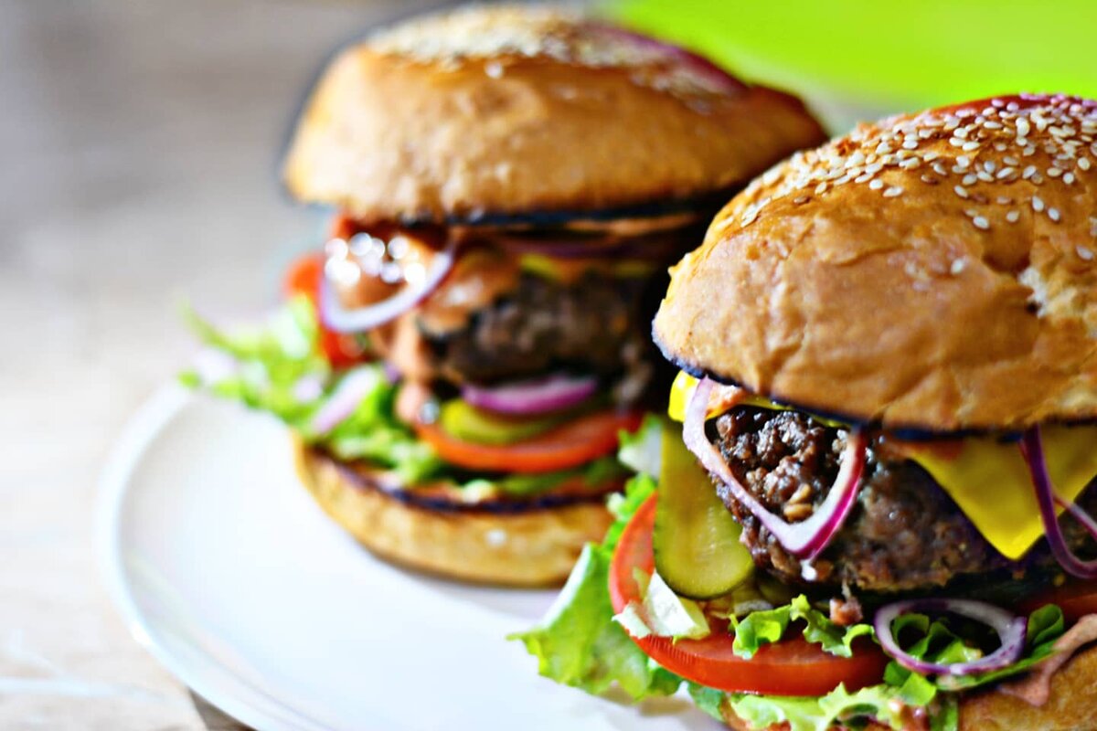 Посмотрев множество рецептов бургера, опробовав их, я решил сделать собственный рецепт. Возможно нового вы ничего здесь не увидите, но пожалуй это лучшее сочетание вкусов в виде бургера. Готовится быстро.Продукты доступные. Ингредиенты: -фарш говяжий - 300 гр -булка для бургера 2 шт -лук красный 1 шт -помидор 1 шт -лист салата - 1 пучок -маринованные огурчики 4-5 штук (корнишоны) -соль и черный перец - по вкусу Соус: -майонез 1 ст.л -кетчуп 1 ст.л -горчица 1 ч.л -сушеный чеснок 1 ч.л Приготовление: Разрезаем булочки и румяним их без масла на сковороде. Далее фарш солим и перчим. Формируем котлеты и обернем их пергаментом. Обжариваем по 5 мин с каждой стороны без масла! Пока готовятся котлеты делаем соус из майонеза, кетчупа, горчицы и сушенного чеснока. Нарезаем овощи. По готовности кладём пластики сыра на котлетки, пока они горячие. Берём булку можем соусом нижнюю часть. Следом салат,помидор,корнишоны,котлета, сверху лучок маринованный. Можем щедро верхнюю часть булки и