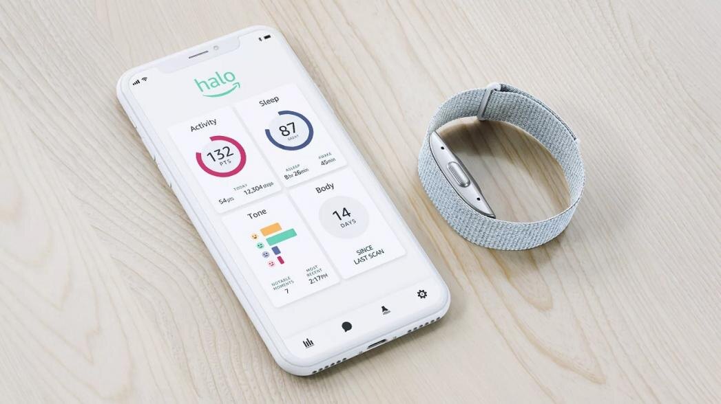 Amazon выпустил собственное носимое устройство и приложение для фитнеса и контроля здоровья, которые не только отслеживают физическую активность человека, но и контролируют его эмоционального состояния путем ежедневного сканирования тональности его голоса. Трекер Halo в виде браслета (работающий совместно с соответствующим приложением) несколько меньше по размерам по сравнению с устройствами, предлагаемыми Apple и Fitbit, не имеет сенсорного экрана и функционала уведомлений. Устройство используют комбинацию сенсоров на базе программного обеспечения с применением технологии искусственного интеллекта и камеры смартфона для построения "модели" пользователя, предоставляя данные о процентном содержании жира в организме, температуре, пульсе и качестве сна. Это водонепроницаемое устройство рассчитано на ношение 24 часа в сутки 7 дней в неделю и содержит аккумулятор, способный работать в течение недели без подзарядки. Система использует два микрофона для записи тона голоса человека и с помощью