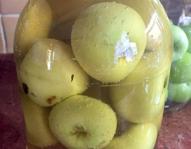 Затем достаем банку из воды, она горячая, поэтому следует использовать либо специальные щипцы, либо защитить руки прихватками или полотенцем, чтоб не обжечься и не ошпариться. Закатываем крышку закатывающей машинкой, берем банку (опять же либо прихватками, либо полотенцем – бережем свои руки), переворачиваем ее вверх дном и ставим в таком положении остывать. Переворачиваем банку для того, чтоб увидеть хорошо ли закрыта банка. Если крышка закаталась на банке плохо, то мы увидим поднимающиеся пузырьки воздуха. При плохо закрытой крышке, компот из яблок не будет храниться долго. Если произошла такая неприятность и пузырьки воздуха показали, что банка не герметична – не проблема, просто откройте крышку, слейте сироп обратно в кастрюлю и повторите заливку и закатку заново.
