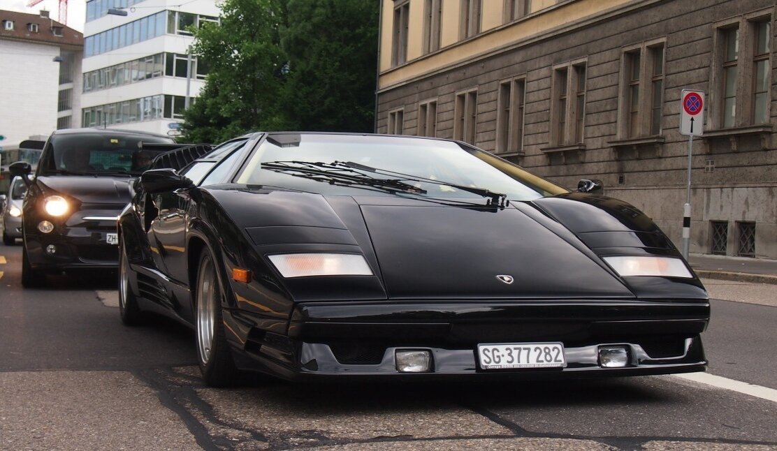 🔥Слово countach удивлённый возглас, использующийся мужчинами при виде очень красивой женщины на пьемонтском диалекте итальянского языка. 😎 Это имя закрепилось за автомобилем после того, как Нуччио Бертоне увидел Проект 112 (рабочее название модели) в своей студии. В 1971 году на автошоу в Женеве прототип был показан именно под этим именем, хотя по традиции компания Ламборгини даёт своим моделям названия, связанные с корридой. Дизайн автомобиля разрабатывал Марчелло Гандини (студия Bertone), он же ранее разрабатывал дизайн Miura. В те годы Гандини был молодым и не очень опытным дизайнером. Он мало ориентировался в эргономике автомобиля и оригинальный дизайн Countach — это его представление автомобиля, практически не искажённое правилами и традициями автомобилестроения. Автомобиль по форме получился угловатым, широким и низким. Фактически корпус состоял из множества трапециевидных плоскостей. Хотя в автомобиле и присутствовали плавные линии, они не смягчали внешней угловатости.