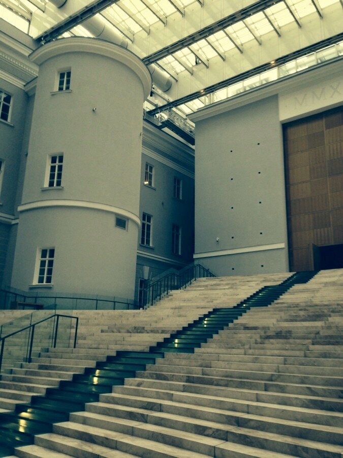 Эти величественные двери я видела открытыми - так красиво и так просто. И когда я вхожу в этот внутренний двор под стеклянной крышей и, восхищенно оглядываясь по сторонам, поднимаюсь вверх по стеклянным ступеням, то вспоминаю слово "ампир". Да, вот он - наш путинский ампир. Главный Штаб - просто чудо. А Мариинка - моя незаживающая рана.