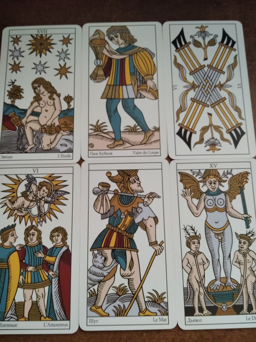 Для этого расклада я использую колоду Марсельское Таро. Подробнее об этих интересных и оригинальных картах можно узнать здесь: