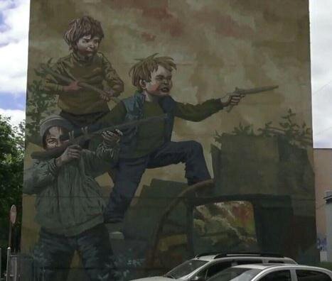 Власти Нефтекамска объяснили смысл граффити с играющими в войну детьми