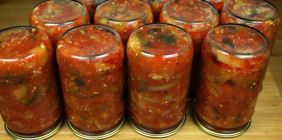 - Горячую закуску из баклажанов разлить по стерильным баночкам 0,5 литра