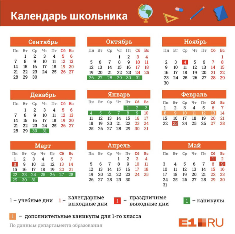 Родителям на заметку 📌 Осенние каникулы, согласно графику, начнутся 26 октября и закончатся 31 октября, при этом они не будут захватывать праздничный день 4 ноября, который в этом году выпадает на середину недели. Новогодние каникулы начнутся 30 декабря, это среда, и продлятся до 9 января. Кстати, как будут в праздники отдыхать взрослые, до сих пор неизвестно — производственный календарь пока не утвержден. Известно лишь то, что 31 декабря будет рабочим днем. Весной дети отдохнут еще десять дней— с 22 по 31 марта. Дополнительные каникулы предусмотрены для первоклассников — с 8 по 13 февраля. Напомним, в минувшем году график каникул из-за пандемии немного «съехал» — весенние каникулы продлили на несколько дней, а затем дети вышли учиться дистанционно. Начало нового учебного года школьные педагоги пообещали отдать повторению материала, который ребята проходили дистанционно всю последнюю четверть.
