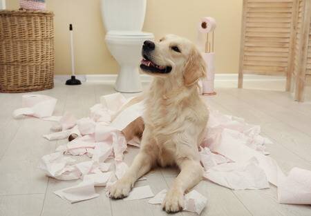 2. Собак привлекают рулоны туалетной бумаги, в том числе, потому что они вращаются. Попробуйте приобрести дозатор бумаги, у которого рулон спрятан внутри.