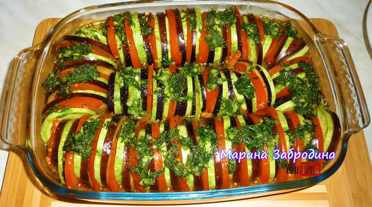 Здравствуйте! Сегодня я приготовлю вкуснейшее овощное блюдо Французской кухни - Рататуй. Овощи готовятся в томатном соусе, благодаря чему размягчаются, вдоволь пропитываются соком и ароматом. Согласно классической рецептуре в состав его ингредиентов должны входить свежие помидоры, репчатый лук, кабачок и болгарский перец. Все эти овощи измельчались, укладывались в форму и запекались. В итоге получалось вкусное и довольно сытное блюдо.