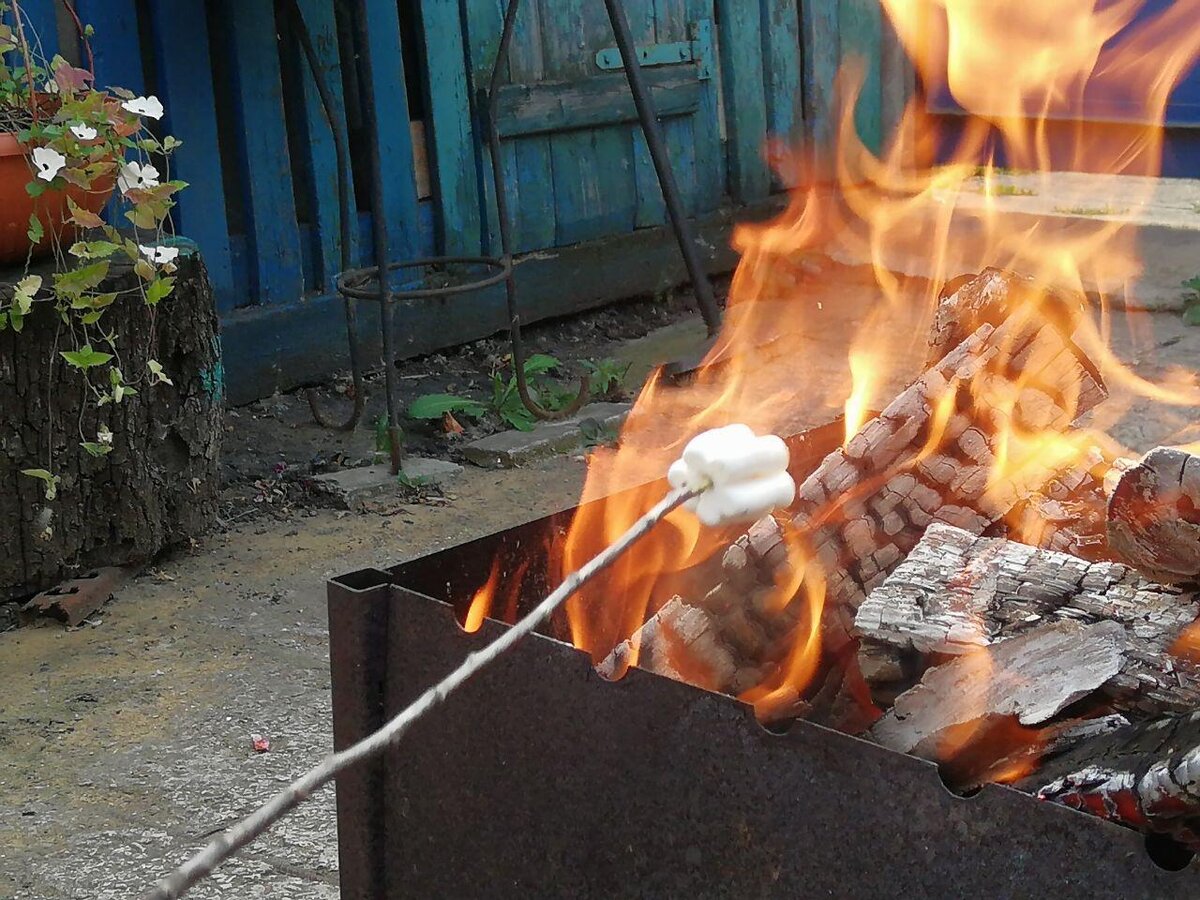 Вчера жарили шашлык и решили наконец попробовать пожарить маршмеллоу (это такой вид зафира по-нашему) на огне.