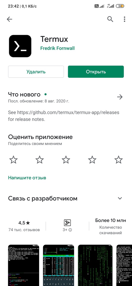 1. Заходим в Play Market и скачиваем приложение под названием Termux.