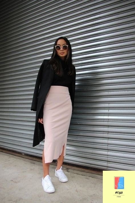 Самым лучшим вариантом будут пастельные оттенки, так как они сочетаются почти со всем! Ваш образ также смогут дополнить разрезы на юбке, о которых мы говорили чуточку ранее, а также необычный цвет и аксессуары!