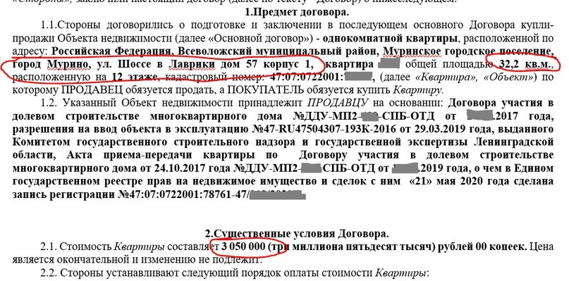 покупаем с клиенткой 1к 32м2 в ЖК Муринский посад в готовом доме за 3050т.р. скриншот из ПДКП прилагаю: