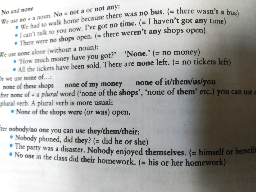 И, напоминаю, что после nobody/no one глагол ставится в 3 л. ед.ч., а местоимение – в 3 л. мн.ч.