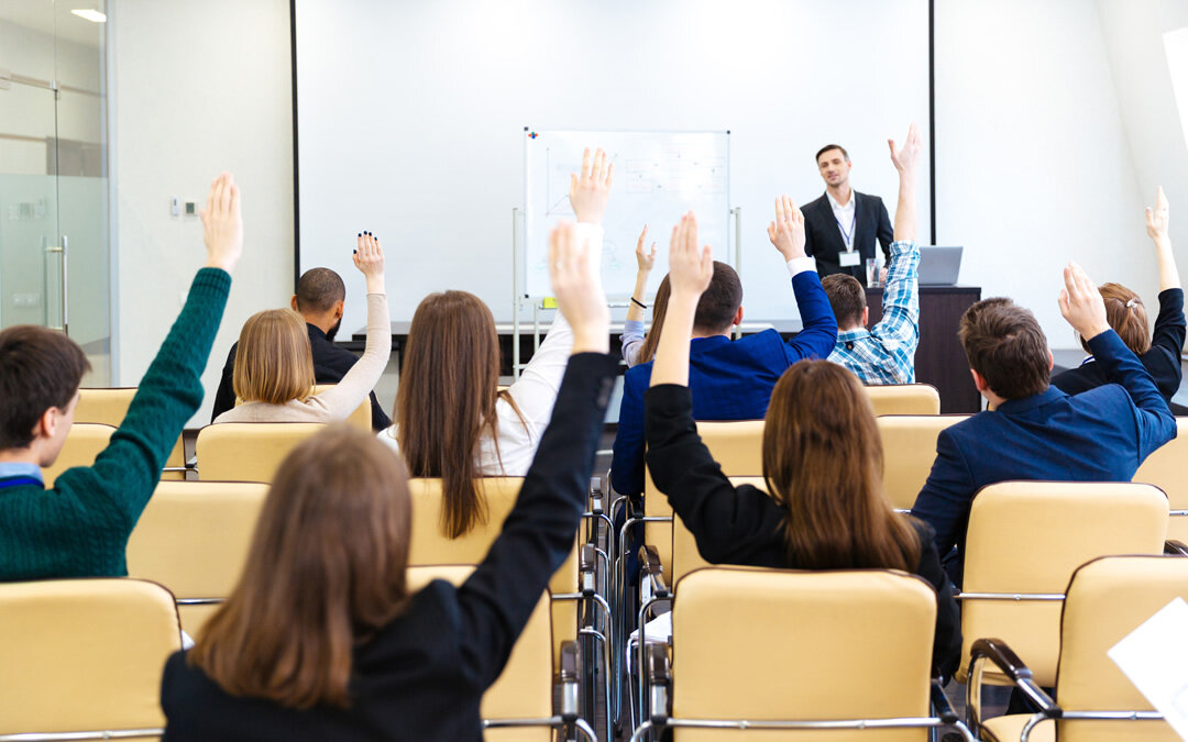 Любопытное наблюдение: если хотите, чтобы аудитория при голосовании поднимала руки — поднимите руку сами, озвучивая один из вариантов ответа. Так вы покажете людям, как нужно реагировать на ваши вопросы.