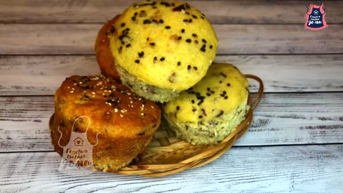 Через 10 минут ставим формочки в пароварку, посыпаем кунжутом и готовим на пару 25 минут. Эти булочки также можно готовить в духовке при 190 градусах 25-30 минут.