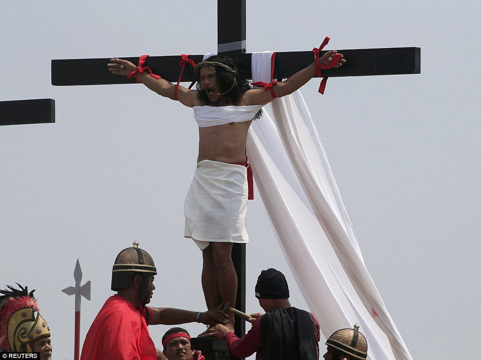 На Филиппинах есть традиция распинать верующих на Страстную неделю. Звучит ужасно, но верующие идут на это добровольно, чтобы испытать на себе муки Христа. Гвозди обеззараживают, а распятых снимают через несколько минут. Церемония выглядит так: