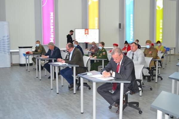 Международная просветительско-патриотическая акция прошла во всех муниципальных образованиях региона 3 сентября за парты на площадках проведения «Диктанта Победы» сели военнослужащие, школьники, студенты, ветераны и активные кировчане, желающие поддержать патриотическую акцию. Главной площадкой «Диктанта Победы» в Кировской области стал Инженериум ВятГУ. На входе участников диктанта встречали волонтеры. Одна из важных задач в сложившейся эпидемиологической ситуации – контроль за соблюдением всех требований безопасности. Перед тем как пройти регистрацию участникам диктанта измеряли температуру и выдавали защитные маски. На площадке проведения «Диктанта Победы» участники могли погрузиться в атмосферу военного времени. В Инженериуме ВятГУ развернулась экспозиция «Военное оружие Великой Отечественной войны». Организаторы акции провели для собравшихся экскурсию по выставке, показали подлинные личные вещи красноармейцев, поднятые при поисковых работах на местах боёв, обмундирование солдат