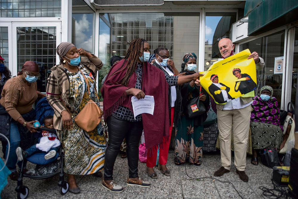 Развернув флаги Всеобщей конфедерации труда (подразделение профсоюза для сотрудников элитных и бюджетных отелей), в накидках с символикой своего профсоюза, горничные отеля Ibis, расположенного в парижском районе Батиньоль, снова выставили пикет перед входом в гостиницу. Так как группа Accor решила вновь открыть свои заведения в этот вторник 1 сентября, работницам не оставалось ничего другого, как возобновить борьбу, начатую почти четырнадцать месяцев назад, 17 июля 2019 года. Около 100 человек пришли их поддержать в первый день осени. Это были делегации от профсоюзов Solidaires почтовых отделений, клининговых компаний и SNCF. «В 2003 году мы уже поддерживали работников отеля Arcade», – объясняет представитель профсоюза SUD rail Saint-Lazare. Также приняли участие в пикетировании активисты ВКТ ячейки 17-го округа, RATP и торговых организаций. «Мы полностью поддерживаем их. Мы выдвигаем такие же требования против социальной нестабильности и низких заработных плат. В нашей сфере многие работники тоже получают не более 700-800 евро в месяц», – объясняет Ален, представляющий делегацию ВКТ сетевых магазинов Monoprix (1) региона Иль-де-Франс. Виднеются и флаги активисток феминистской ассоциации Femmes Égalité. «В таком бедственном положении находятся не только горничные, но и все женщины. Мы защищаем своё право на труд и достойную зарплату», – говорит активистка этого движения Франсуаза.