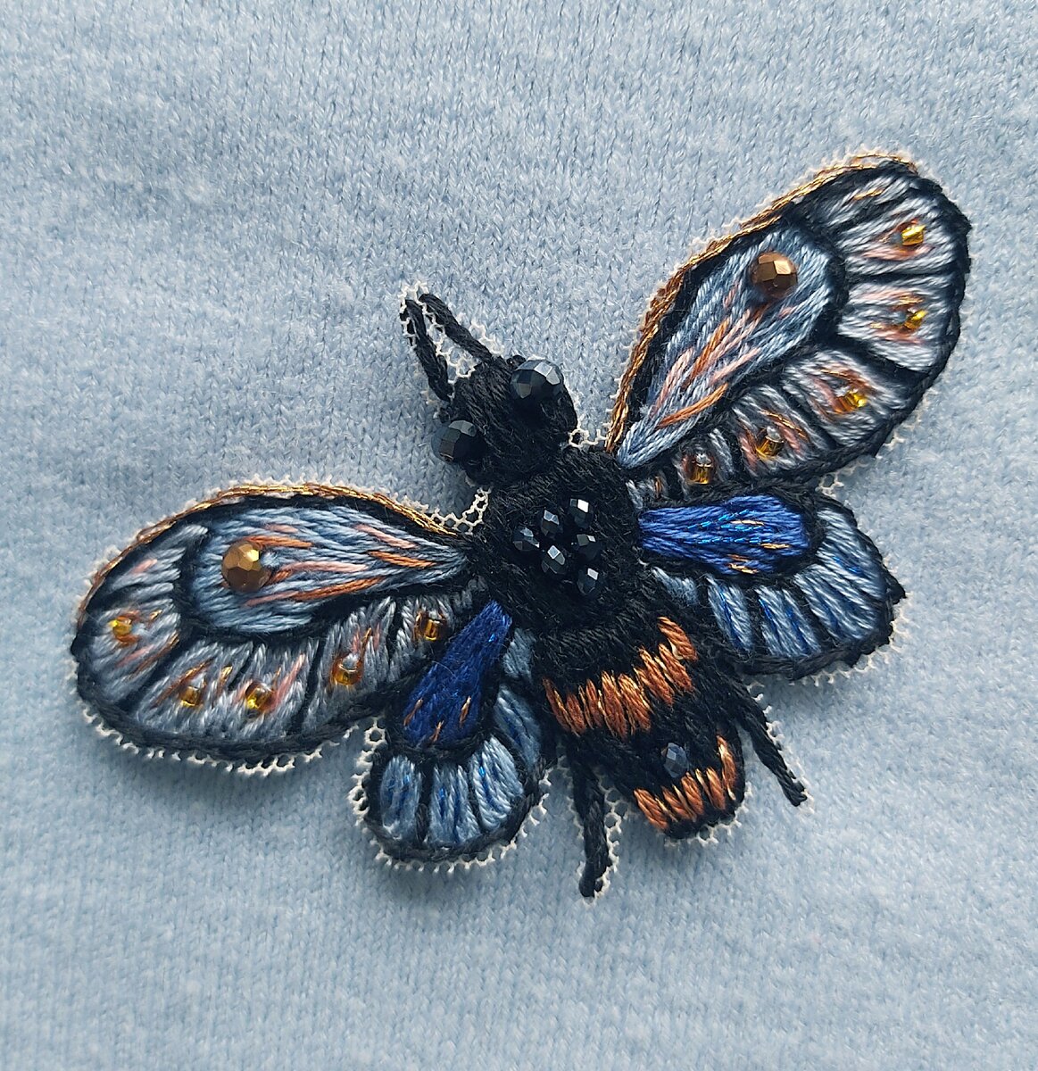 Покажу новую работу, только что вышитую пчелку!