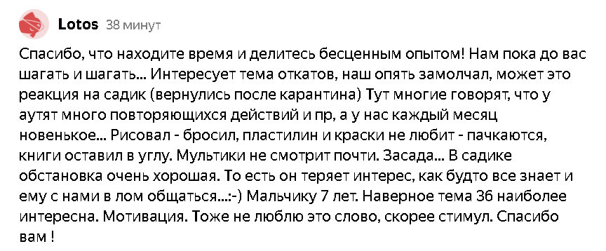 Аутизм. Ответ читателю. Ребёнок начинает и бросает. Что делать.