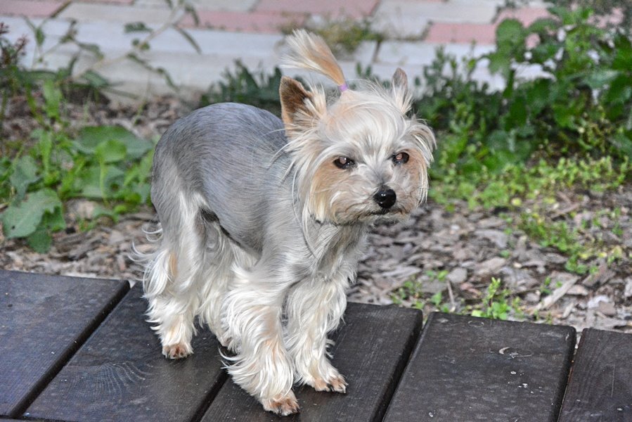 Лилу любит прогуливаться в одиночестве, иногда делает засаду на Василия, но большей частью ведёт себя прилично, как и полагается даме из высшего общества. Вообще-то трудно встретить более воспитанную собаку, чем Лилу. Я вот никогда не встречал, наверное в йоркширах, это заложено генетически. Впрочем у меня не так много знакомых йоркширов, чтобы рассуждать о их характере. А еще Лилу модница, каких поискать, у неё всегда модная стрижка, а на этот раз и модная, красивая попонка кофточка.