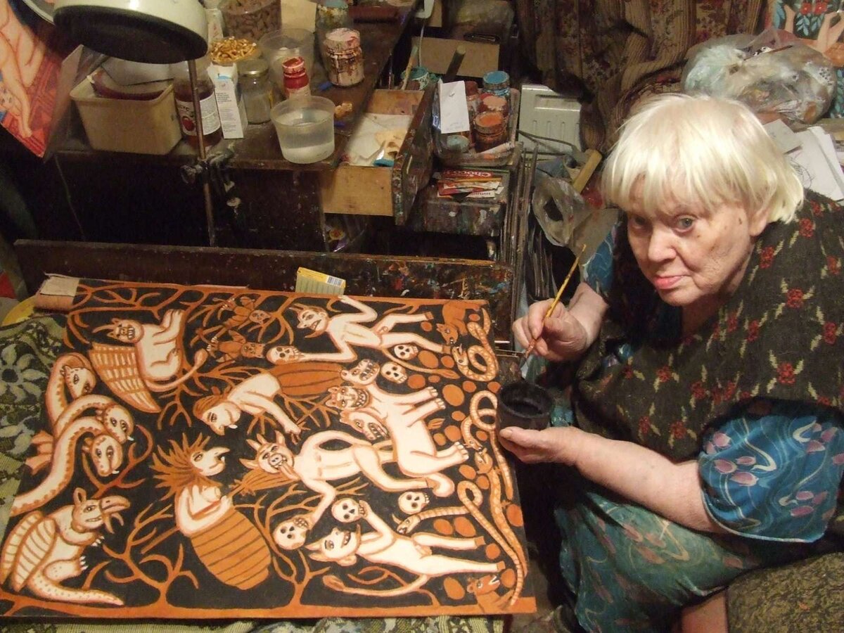 Небольшая комната в московской квартире, где она живет и работает – ее творческий эдем, который больше похож на музей. Сотни картин, краски, кисти, старые фотографии и масса предметов, которые накопились за жизнь – занимают 80% процентов комнаты. На остальных 20 живет, творит и получает кайф от жизни талантливая наивная художница Алевтина Пыжова. Только здесь, в окружении своих творений ей комфортно, уютно и безопасно. Проснулась и за работу над очередным сказочно-мистическим сюжетом – это счастье Пыжовой.