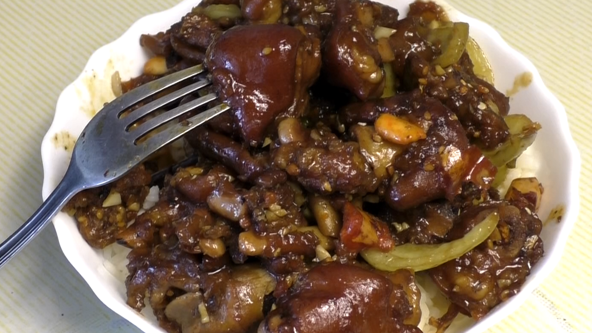 ОСТРЫЕ СВИНЫЕ НОЖКИ С ЧЕСНОКОМ В КАЗАНЕ, Китайская кухня, 蒜蓉豬腿, Pork leg with garlic