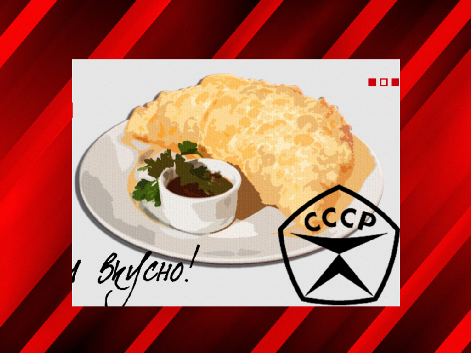 В то время когда вся страна помешана на чуждом нам империалистическом фастфуде, мы рады Вас приветствовать на нашем сайте, и приглашаем посетить наши кафе ЧЕБУРЕЧНАЯ СССР. В непринужденной и уютной обстановке вы погрузитесь в эпоху Советского Союза. Согласитесь, не все было так плохо в то время? Так давайте же вспомним, как это было! У нас Вы сможете отведать самые демократичные блюда советского периода ЧЕБУРЕКИ и ПЕЛЬМЕНИ ручной лепки, приготовленные по классическим рецептам. Также в ассортименте представлены различные горячие и холодные ЗАКУСКИ, разливное ПИВО и ВОДЫ. Легкий завтрак, сытный обед и романтический ужин по-советски - всегда к вашим услугам. В зале играет легкая музыка в исполнении кумиров советской эстрады.