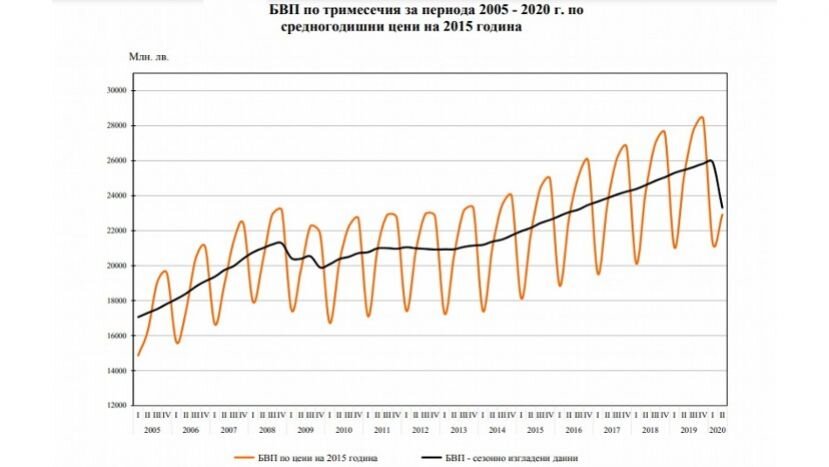 Во втором квартале 2020 года ВВП Болгарии составил 27 395 млн. левов по текущим ценам или 14 007 млн. евро, или 2 016 евро на душу населения. По сравнению со вторым кварталом 2019 года ВВП упал на 8.5%, а по сравнению с первым кварталом 2020 года – на 10%, показывают данные Национального института статистики... ВВП Болгарии во втором квартале упал на 8.5%