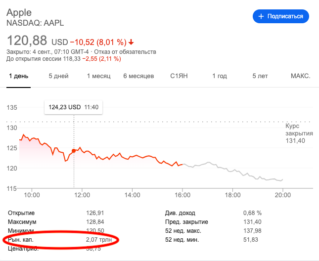 2 триллиона долларов. В такую сумму сейчас оценивается капитализация компании Apple.