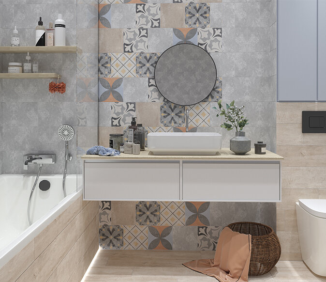- Сложность проекта. Если у вас нет достаточного опыта в укладке плитки из керамогранита, то не стоит слишком мудрить с дизайном. Сделать стильный интерьер можно без ломаных линий, ниш, выступов и тд.