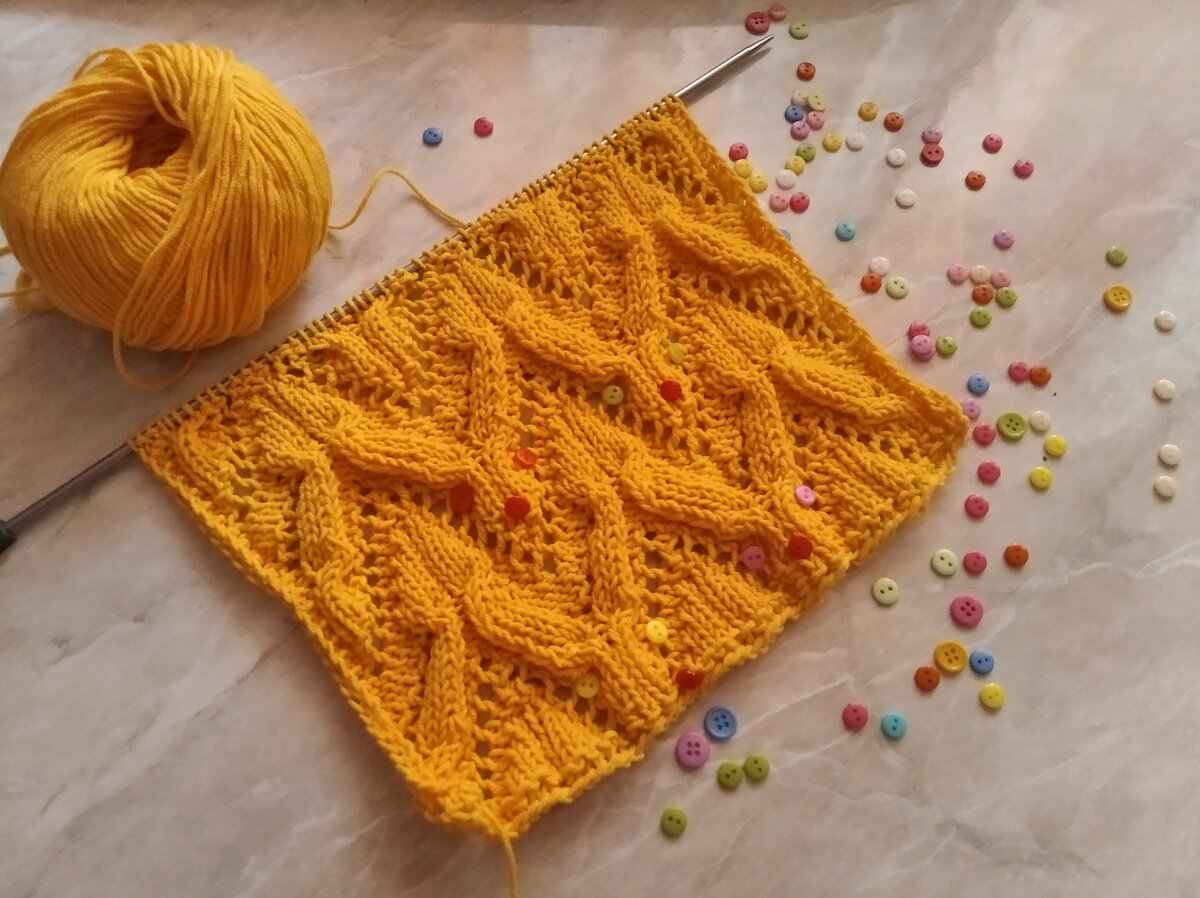 Раппорт узора 18 петель на 22 ряда, а получившиеся полотно лучше не отпаривать утюгом (теряется объем)
