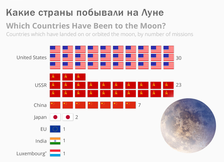 Какие страны побывали на Луне