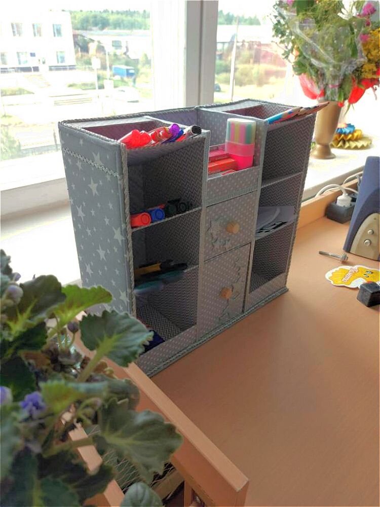 Встречайте - новый органайзер, делала я его на заказ, а заказчиком, выступила моя младшая дочь, ей на стол, нужен такой накопитель, для всяких канцелярских мелочей, т.к. она работает учителем в школе))))))