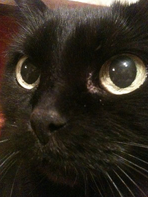 PS: На фото снимок моего сегодняшнего кошачьего попутчика, чёрной кошки Симы. Она со мной активно блуждает по тропинкам жизни уже двадцать лет! (30.08.2017г.)