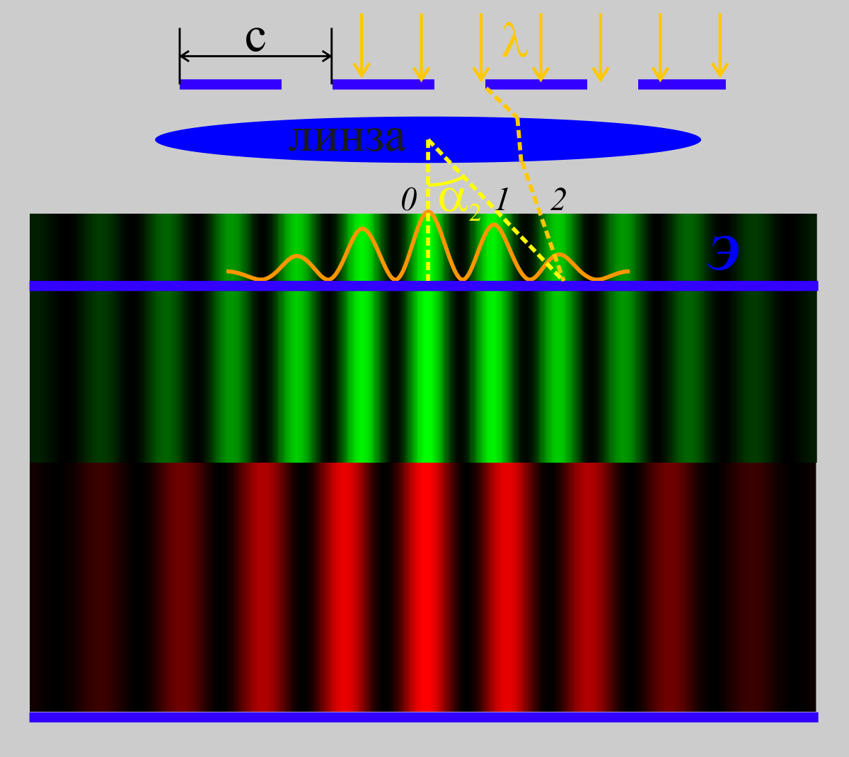 На дифракционную решётку падает нормально свет. При этом максимум второго порядка для линии λ1=0,65 мкм соответствует углу α1=45ͦ. Найдите угол, соответствующий максимуму третьего порядка, для линии λ2=0,5 мкм.