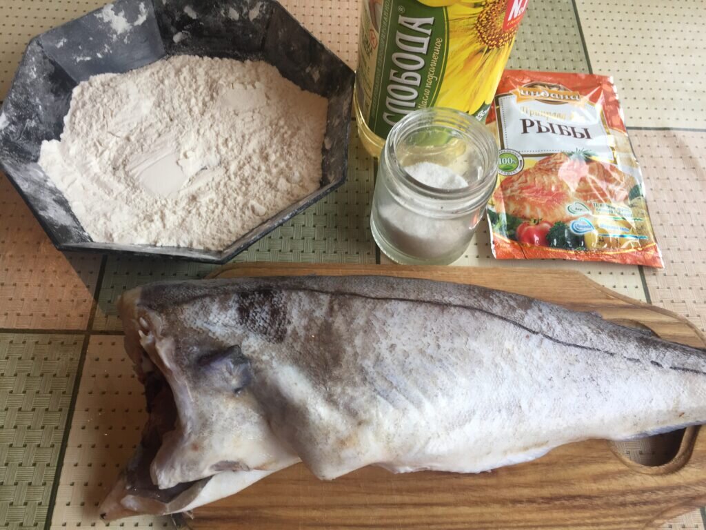Рыбу размораживаем, чистим, отрезаем плавники и убираем чёрную плёнку внутри. Нарезаем на стейки. Солим их и посыпаем приправой с двух сторон. Приправу слегка втираем в стейки. Даём постоять 20-30 минут, чтобы рыба впитала в себя соль и приправы.