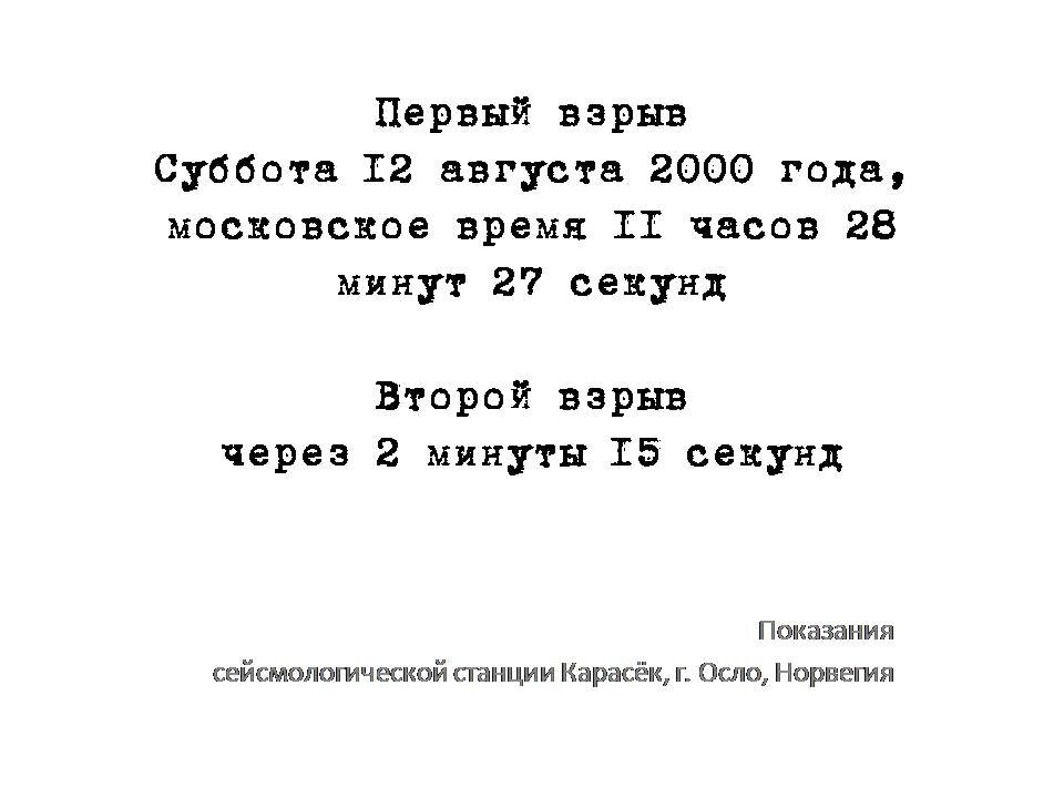 14.08.2000 года. Первое официально заявление властей об аварии. Поступил запрос от Норвегии. Скандинавов, в первую очередь, интересовал вопрос радиационной опасности.