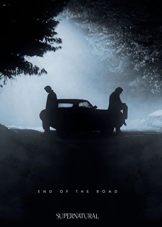 На постере художник показал братьев Винчестеров, стоящий у своего знаменитого автомобиля. Художник подписал постер - "End of the Road".