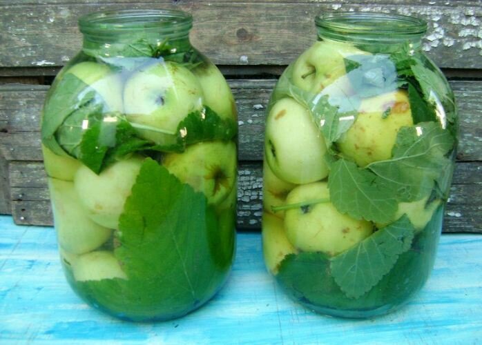Для такой заготовки понадобятся яблоки поздних зимних сортов, которые созревают осенью. Это пепин, антоновка, анис, титовка, славянка. А какой раствор, рассол или солод использовать расскажу чуть ниже. Нам понадобится: яблоки (целые, не битые и не гнилые) листья пряных растений (смородина, вишня, малина, виноград) 3 л воды 100 гр. сахара 50 гр. соли (1,5 ч. л. с верхом) 50 гр. солода (1 ст. л. ржаной муки растереть с холодной водой в кашицу и заварить кипятком) Как делать: 1. Банки вымыть с содой. Никакого мыла и прочих химических средств! Затем банки сполоснуть теплой водой и окатить горячей изнутри. 2. На дно банок выложить немного листьев, сверху чистые яблоки. И вот так слоями заполнить банки до самого верха, чередуя слои травы и яблоки. Важно! В старину яблоки мочили/квасили в деревянных бочках и на дно клали ржаную солому. Но в наше время гораздо удобнее делать это в пластиковых баках с крышкой или флягах, объемом от 10 литров. Если вы хотите намочить яблок на пробу, то трех ли