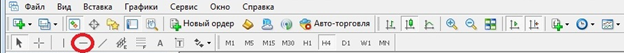 Технически, для построения линии в торговом терминале просто, нужно нажать на кнопку «наклонная линия» и переместить мышкой линию в нужную область графика.