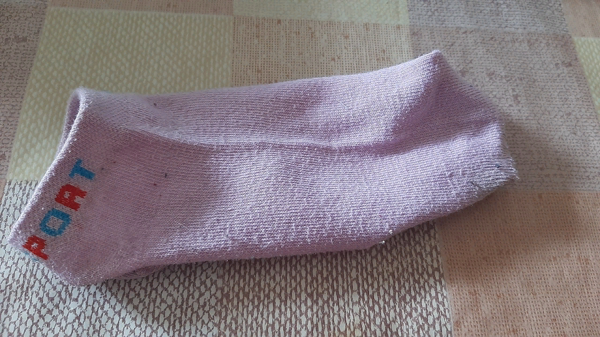 Начну с того, что я взяла обычный носок и туалетную бумагу. Надо было поместить бумагу внутрь носка и правильно закрутить ткань.